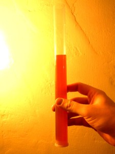 In another minor technique change, I decanted the beer from the primary into the secondary fermenter through a hose attached to the spigot at the bottom of the primary, rather than through siphoning. I had been a little hesitant to try this, because I was worried about getting too much of the trub and other nastiness off of the bottom. But, it doesn’t seem like any more than normal got carried along (especially when I tipped the bucket back a bit for the initial part of the siphoning). I’ll definitely be trying this again, as it was much easier.