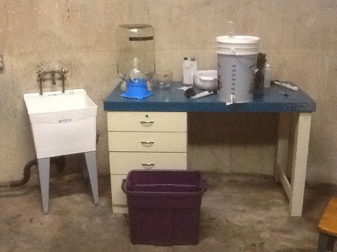 This transfer session is also notable as the first time I’ve used my “new” brewing setup in the garage. I finally got some time to swap out the old utility sink (which was covered in grease, old paint, and other grunge) and set up a re-purposed work bench. Just on this first run it is much more convenient than the kitchen counter!
