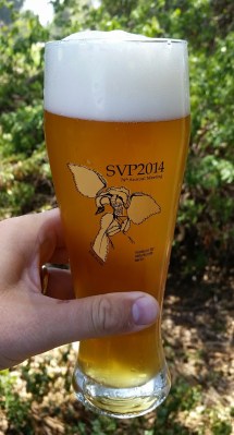 - The head is white, creamy, and fine; almost meringue-like in consistency. It is incredibly persistent, too; even though it thins out some time after pouring, the head sticks around down to the very end of the glass. In fact, if anything the head is a little too dramatic – it takes a slow pour, a steady hand, and a bit of patience before the glass is full and ready to drink. I initially had chalked this up to potential over-carbonation, but now I’m pretty satisfied that it is a happy consequence of an all-grain beer with a heavy percentage of wheat. The beer itself is light gold and modestly hazy (it has clarified some over the 2-3 weeks since tapping the keg).