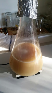 - I chilled the wort down to 80°, transferred it to the fermenter, and pitched the yeast starter. Approximately 5.5 gallons of wort went into the primary.