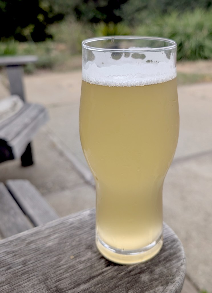 • Modestly hazy, shimmery, pale yellow beer that pours with a surprisingly persistent white head, which leaves some lacing on the glass.