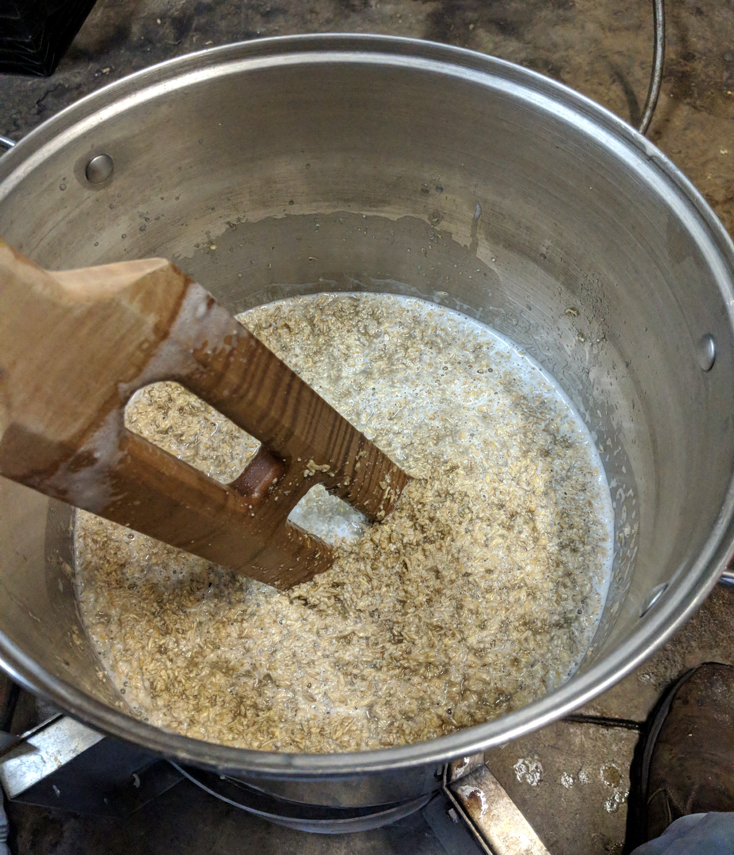 - Then, I added 2.25 gallons of water at 185°, let sit for 10 minutes, vorlaufed, and collected the second runnings.