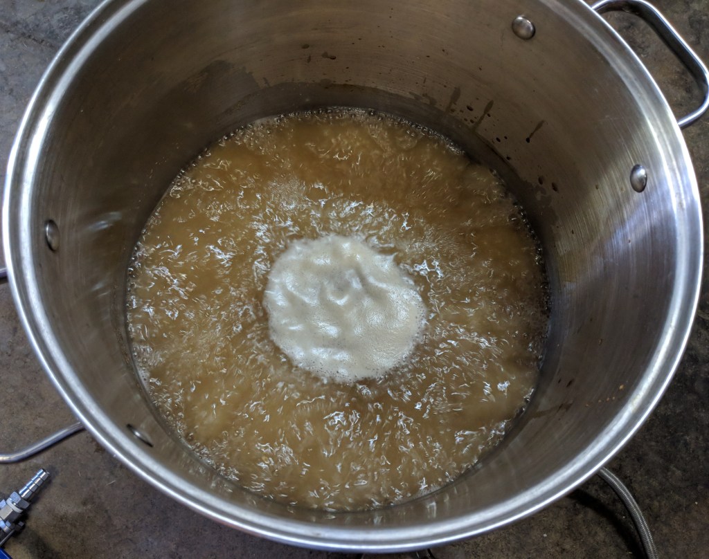 - I brought the runnings to a boil, adding hops and kettle finings per the schedule. To keep bitterness closer to my calculated numbers, I removed the boil hops before adding the whirlpool charge.