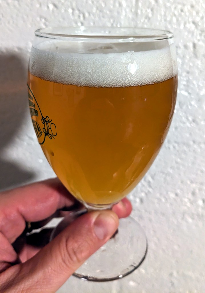 - Clear, light gold beer, pouring with a persistent white head. Very pretty!