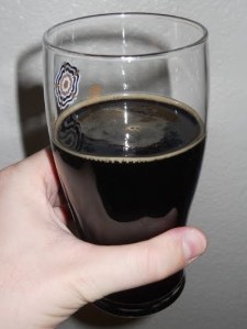 • Clear as near as I can tell, but pitch-black in the glass. When you hold it up to the light, you can glimpse a dark brown color with a red tinge to it, but that’s only if you have the thinnest sliver of beer against strong backlight. The head is dark tan and thin, with a fine texture and good retention.