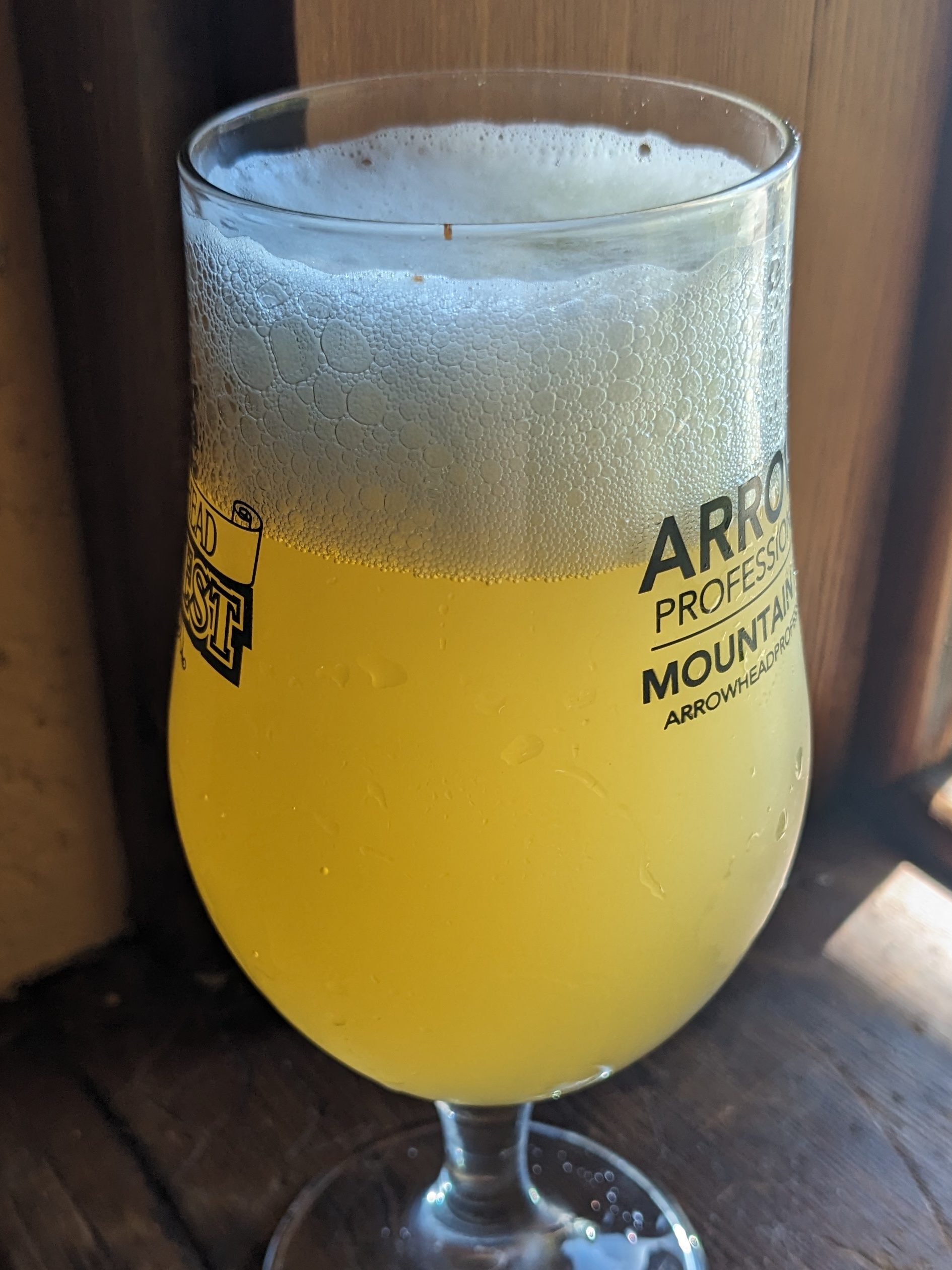 - Clear, light gold beer, pouring with a persistent white head. Very pretty!
