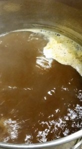 - After the initial 45 minutes of boiling, I began adding hops and other finings per the recipe, with corn sugar added at the very end.