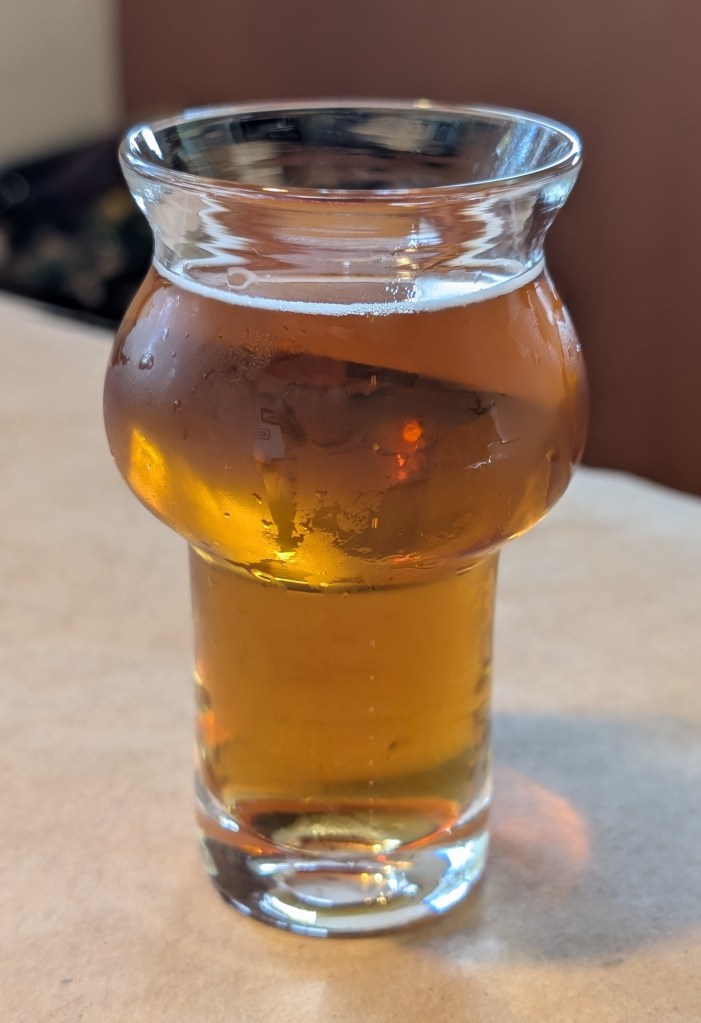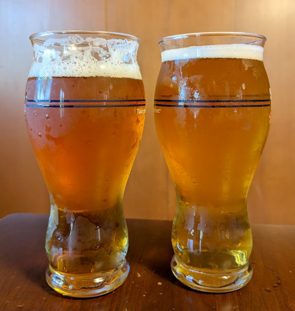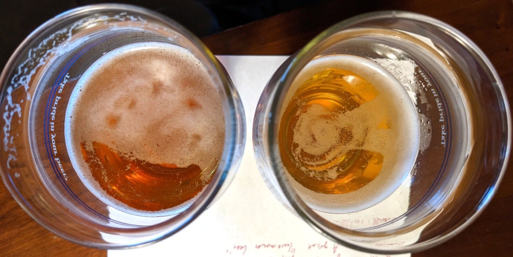- A very clear, light amber beer, which pours with a thin ivory head that quickly subsides. It’s a bit lighter in color than the original inspiration.