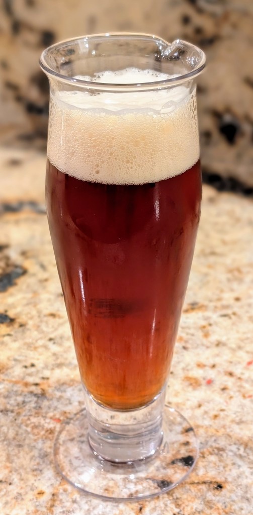 • This is a good beer but nothing special. I was hoping for a bit more spice character, but there isn’t really any. I would probably increase the spicing rate a touch. For a similar beer next time, I would condition longer. It needs more body and malt “oomph”! Given all of the crystal malts, I’m surprised it doesn’t give the impression of more body. Perhaps for this kind of beer, it would benefit from a higher starting gravity or swapping in Munich for the 2-row malt. I would also age it for awhile longer. Another challenge is that I have this beer in my conditioning chamber, at around 35°, so it takes awhile to warm up after pouring. It’s definitely better at warmer temperatures!