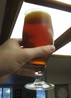 The original version of this recipe has conditioned very, very nicely, and as a result I’ve been drinking it with some regularity. A few weeks back a friend and I did a blind taste-test with the commercial version of Fat Tire. My version is a little less bitter and just a shade darker. Otherwise, they’re quite similar. In some ways, I prefer my slightly less hoppy version; it will be interesting to see how version 1.1 varies.