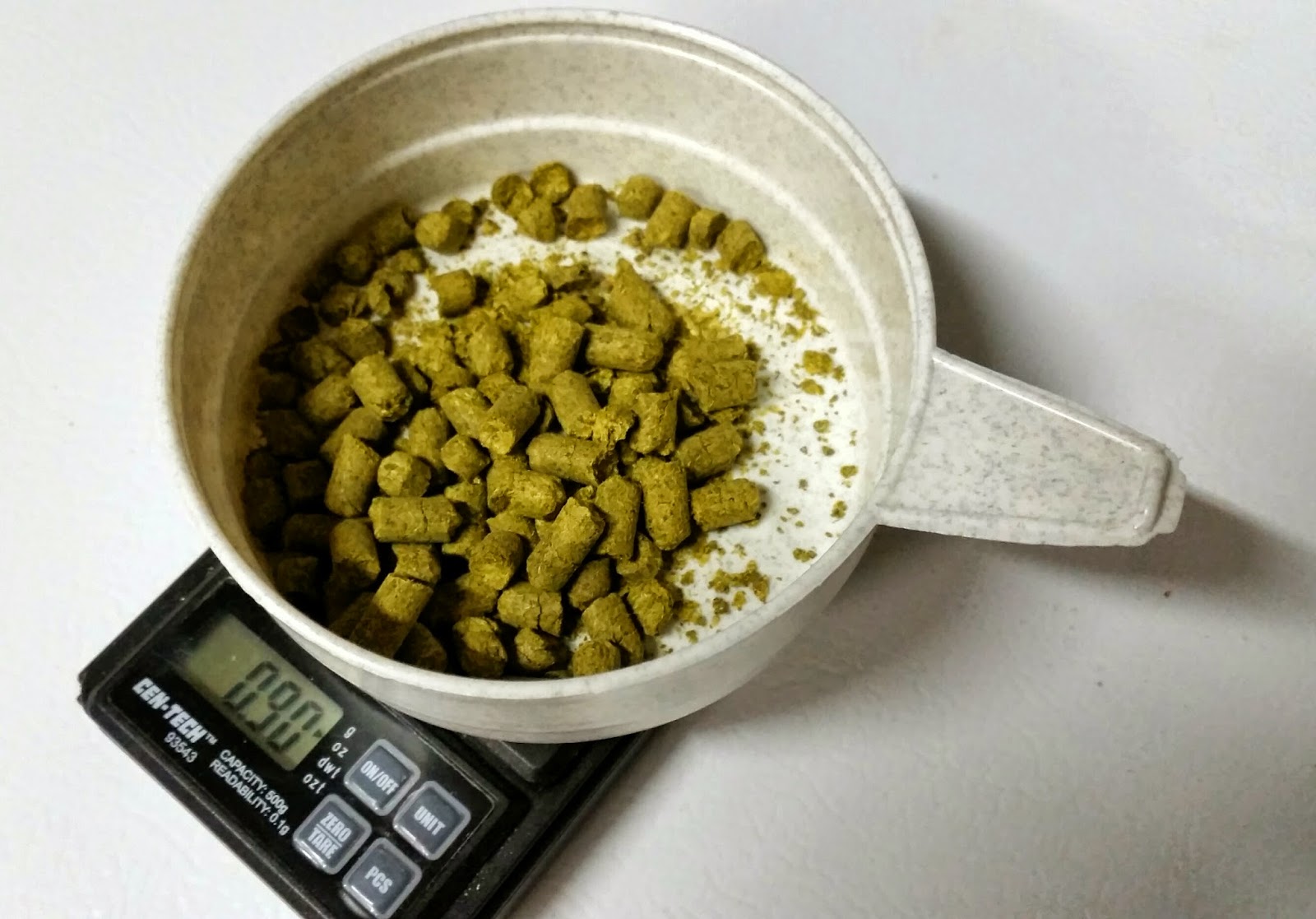 - 1 oz. East Kent Goldings hop pellets (5.4% alpha), 5 minute boil